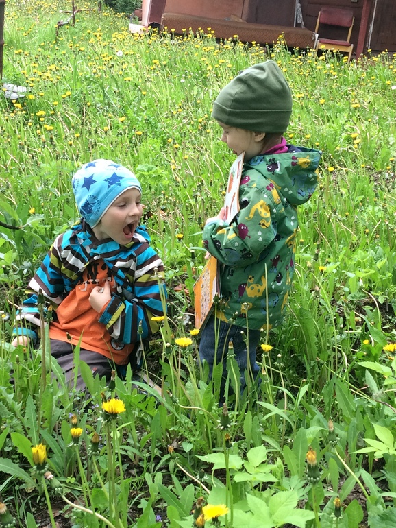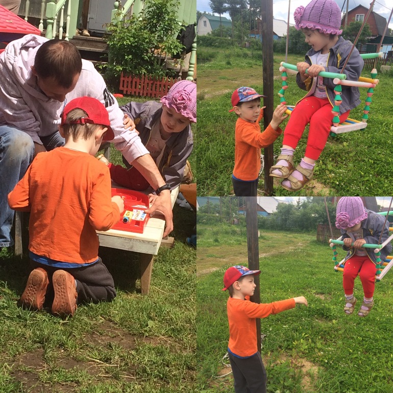 Вот сейчас носятся по газону ,Лешка просить Надю его догнать и палкой ударить