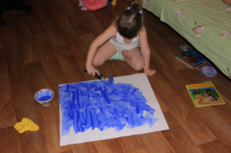 Потом мы говорили о нашем доме и решили сделать наш дом на бумаге. Сделали заготовку из красок.