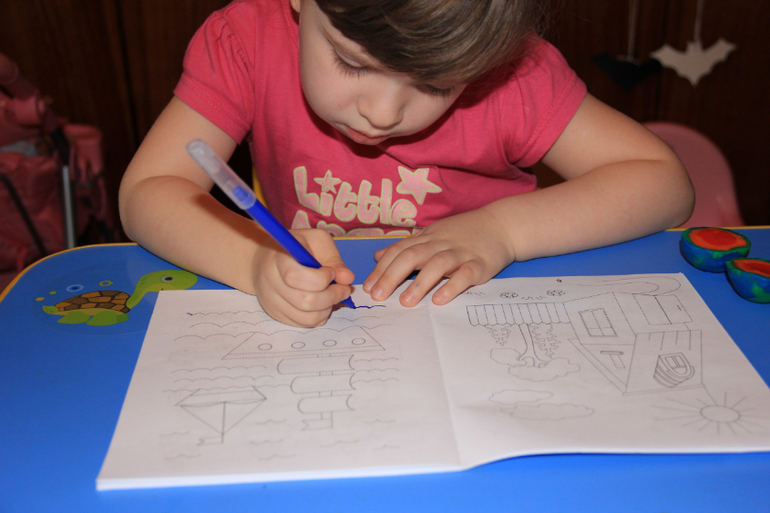 Ну и завершением нашего первого дня было игра в домики. Честно приятно удивлена была, что у Ксю трудности возникли только с Мишкой и Лисой, потому что так была у одного зимняя нора, а другого летняя. И она в этом немного запуталась, так с легкостью со всеми остальными справилась.