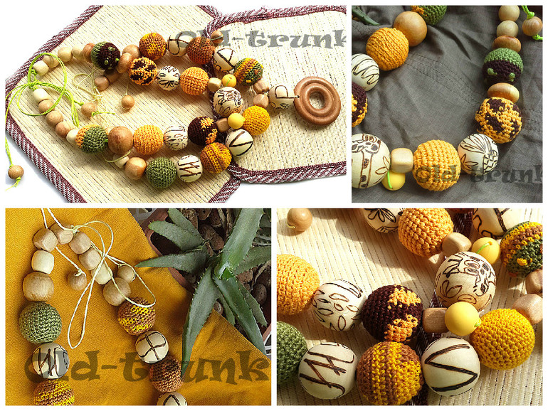 Призываю Весну и тепло новыми бусами для маленьких фей. Можжевельник, дерево, акрил, хлопок.