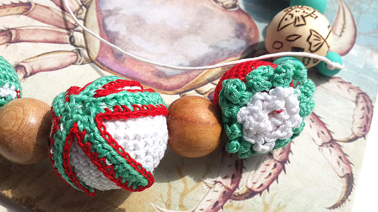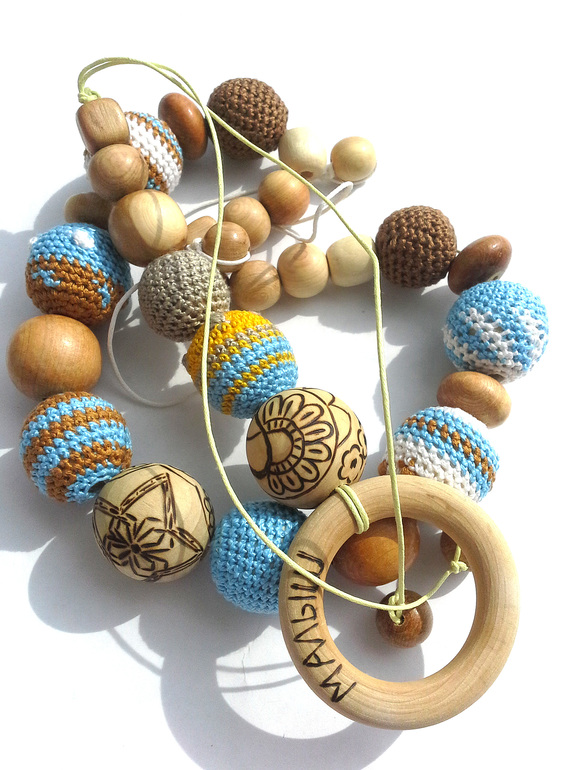 Надпись и рисунки на бусинах - не краска, нанесены пирографически. Абсолютно безопасны для детей, можно грызть.