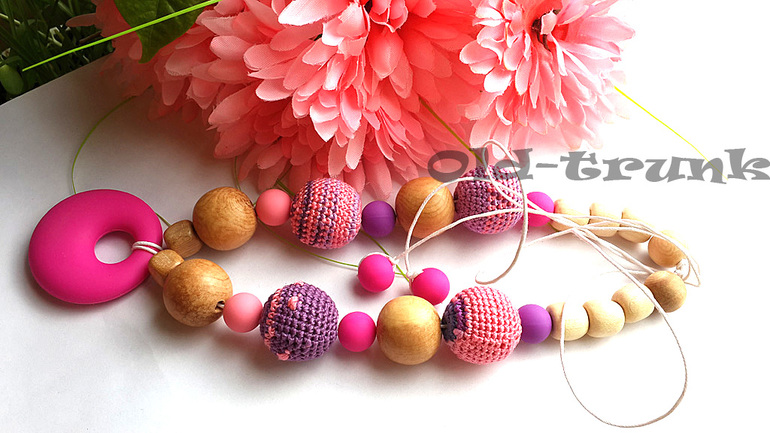 Бусы - Можжевельник, дерево, хлопок, жевательный силикон.