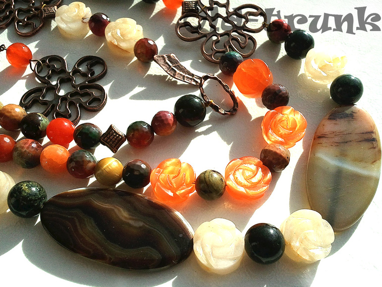 Комплект из колье, браслета и пары серёг. трансформируется в колье на цепи и двойнойбраслет из камней, в колье из камней и двойной браслет с камнями и цепью или в два отдельных браслета и колье, так же из браслетов можно собрать бусы..... вариантов ношения много.