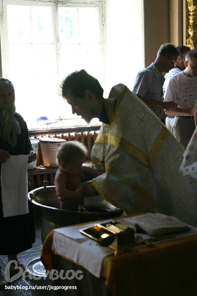 ...С Богом!!! Была нас 7 человек детей, два мальчика, пять девочек, все орали как ненормальные, наш держался! С огромным удовольствием давал себя помазать и искупать в купели. Когда доставали из купели, ухватил батюшку за бороду, тот впервые за всю церемонию улыбнулся. в целом всё прошло хорошо, за исключением того, что у меня начался отит. И это ппц граждане. Уши никогда не болели, а теперь жесть, болит вся правая сторона головы. Даже есть больно... Начали колоть антибиотики. Короче суть не в том, покрестили и очень рады!!!