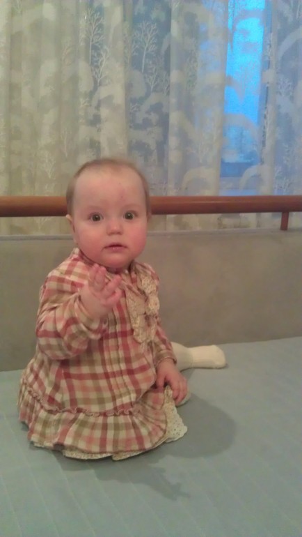 Развитие - вполне по возрасту... вчера начала раскачиваться на четвереньках по несколько секунд (она месяц пролежала в распорках, поэтому всё во время).. ползёт пока "задним ходом"))) может сидеть (если посадить) около минуты не заваливаясь...