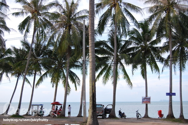 А это наш выход к морю, и тут же импровизированный паркинг, слева направо: 1. Banana Pancake, он же Мистер Блинчик, как мы его любим называть, передвижная мини-кухня на мотобайке, где готовятся очень вкусные тончайшие блинчики с бананом и всевозможными добавками. 2. Мороженщик и его клиент ) 3. Чей-то джип. 4. Чей-то мотобайк. 5. Чей-то велосипед. 6. Чья-то коляска ))
