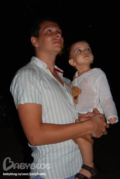А потом, как только на часах показало 12, начались грандиозные фейерверки со всех сторон и даже с соседнего острова, безумно впечатляюще и красиво, но показать, увы, нечего, все смазалось ((( Тёма вел себя молодцом, не испугался, а просто серьезно смотрел по сторонам и внимал действу: