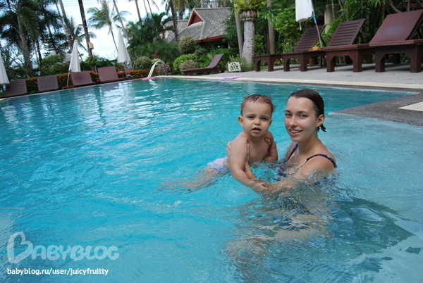 За неимением своего бассейна напросились тут ходить купаться в бассейн при отеле, разрешили нам пользоваться сколько угодно за еду, то есть, после купания надо обязательно пообедать в их кафе. Бассейн прекрасный, мы там частенько бывали и одни вообще, только глубоковато, я со своим ростом вне лягушатника стою только на цыпочках, поэтому Тёму купает в основном папа )