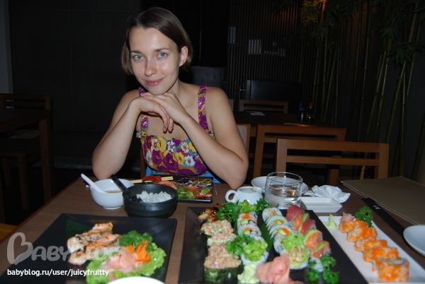 Ходили отмечать ДР мужа в ресторан, попробовали классические японские суши, оказалось, у них все очень лаконично, ничего лишнего, никаких тебе наворотов с клубникой и сыром чеддер, как у нас привыкли извращаться )) Вкусно, однако ж, что тут еще сказать.