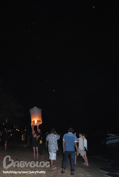 Надо сказать, что весь день у нас шел практически непрекращающийся ливень (народ по этому поводу говорил, что уходящий год плачет и не хочет отпускать)), но ближе к полуночи он все-таки прекратился, и мы смогли выбраться на ближайший пляж, где происходили самые интересные действия ) Где-то за полчаса до наступления нового года народ начал активно запускать в небо китайские фонарики, мы тоже запустили парочку, это продолжалось и продолжалось, пока их не стало уже стотыщ мильонов, куча-куча светящихся точек над головой! Это было очень завораживающе, нигде в Москве я не видела их в таком количестве. Относительно нормальных фото в ночи конечно не получилось, поэтому покажу просто то, что есть: