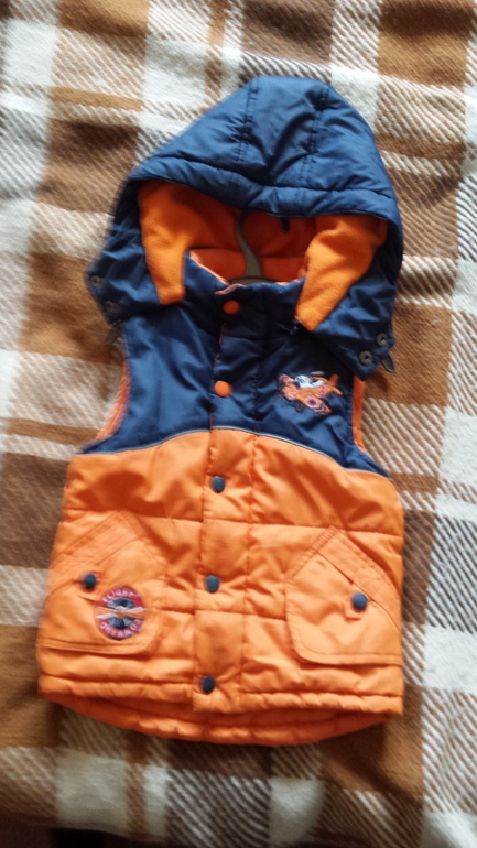 Продается очень красивый и яркий утепленный жилет на мальчика в отличном состоянии. Размер 98, большемерит. Капюшон отстегивается