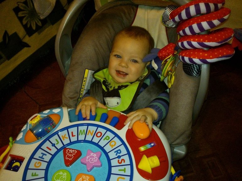 Купили Мишульке новую игрушку-музыкальный столик, такой счастливый с ней) Последнее время стал смешно качаться сидя на попе, а под музыку так вообще целый танец