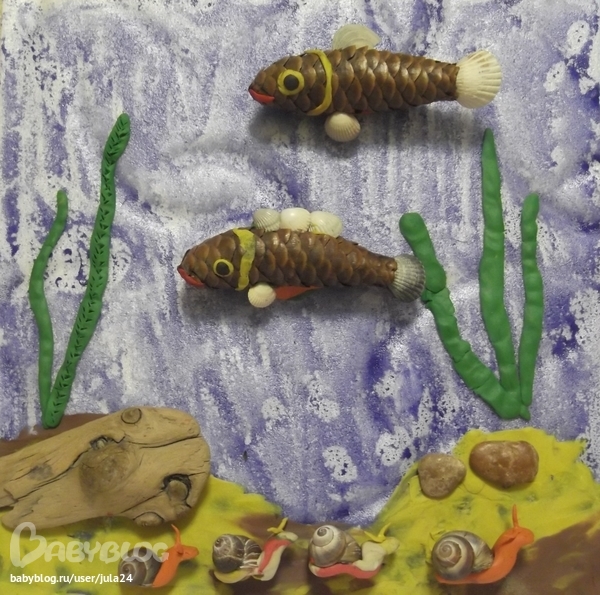 Ничего себе! Фантазия у вас потрясающая! Я бы не додумалась рыбок из шишки сделать! Классс! ))