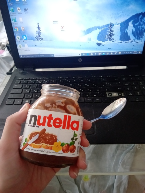 Грустные мысли скрашиваем баночкой нутеллы)))) И работаем))