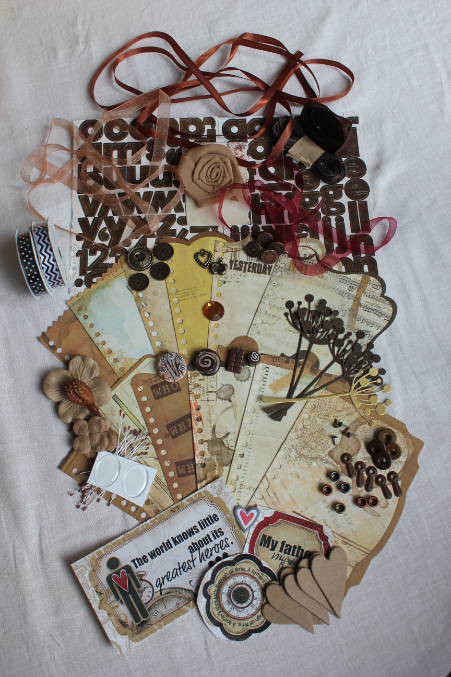Итак, кулинарная книга на кольцах состоит из 160 разлинованных листов, восьми разделителей (Закуски и салаты, Супы, Паста и макаронные изделия, Мясные и рыбные блюда, Выпечка, Торты и десерты, Напитки, Разное) плюс один разделитель для таблички меры весов продуктов, картон, скрапбумага, картинки, ленты, полубусины, деревянные элементы, штампик. Все.