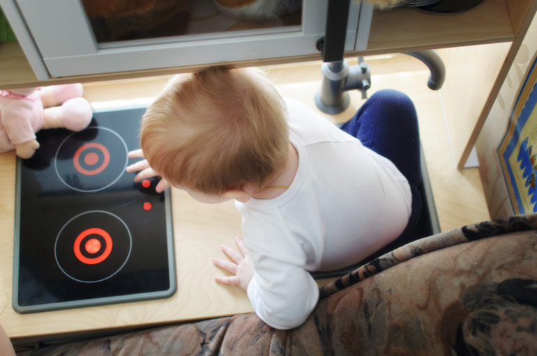 Лезет в розетки и везде, куда нельзя, не отвлекается ни на что, если ругать, хохочет и лезет снова и снова.