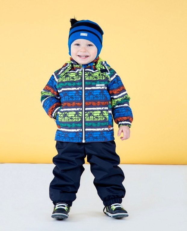 Используются специально изготовленные высокотехнологичные ткани, утеплитель ISOSOFT, предохраняющие ребенка от переохлаждения, практичные в эксплуатации и легкие в уходе.