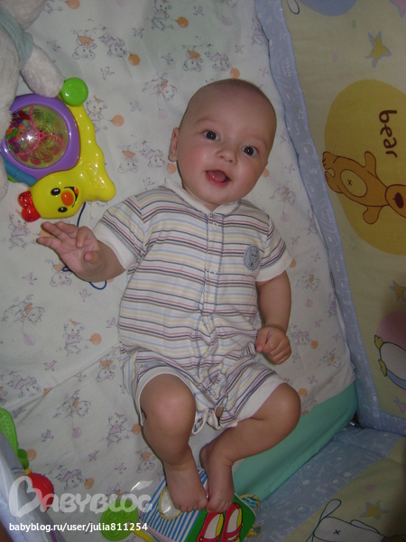 любит валятся кувыркаться на диване, садится сам и сидит без пддержки. трудно надеть подгузник, и вообще его одеть. т.к. надо ему куда-то ползти всегда.