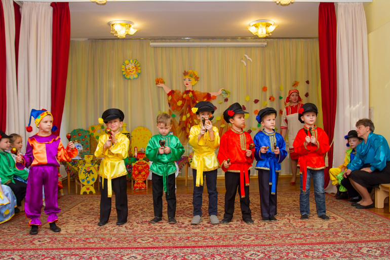 утренник в традициях народных праздников "Ярмарка". На фоне расписных самоваров ребята исполнили народные танцы. Игра на ложках, бублики и скоморохи, песни и веселые игры наполнили мероприятие русским духом. В завершении утренника для детей группы было организовано чаепитие с большим караваем. Вобщем веселый праздник получился)))