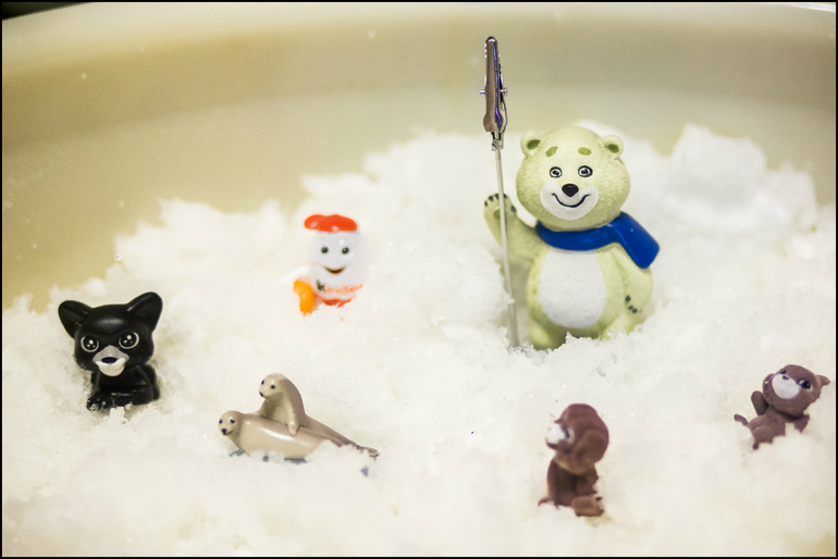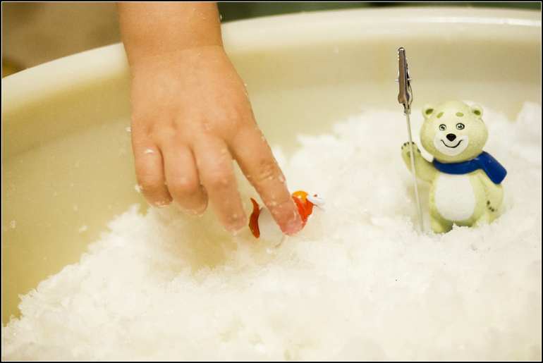 И получается стопроцентная консистенция снега! Олесенька в восторге была! И сразу начала сажать туда своих друзей: