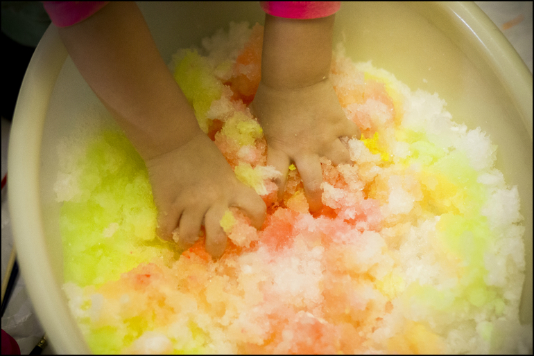 Вот такой цветной снег у нас получился. Олеся возилась с ним ЧАС!