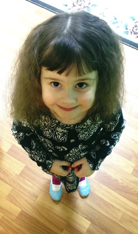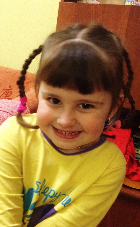 Сегодня их в садике фотографируют на календари. Заплели на ночь 6 косичек, а утром угорали с ней перед зеркалом) Львенок)