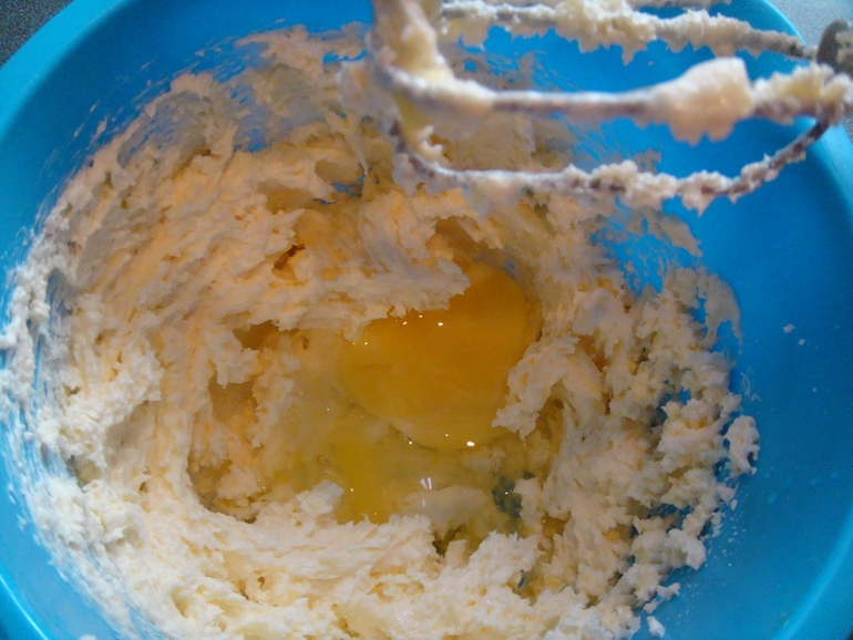 Взбить миксером 1 стакан сахара и 200 г маргарина: