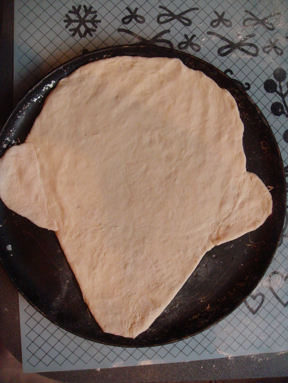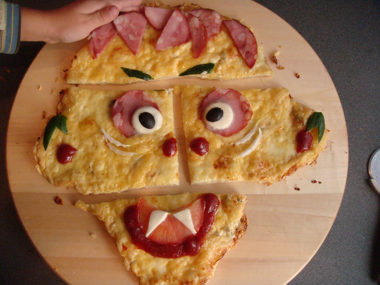 Замесить тесто из 1 стакана теплой воды, щепотки соли, 1 ст.л. оливкового масла, 0,5 ч.л. дрожжей и муки. Раскатать тонкий пласт теста. Вырезать форму головы: