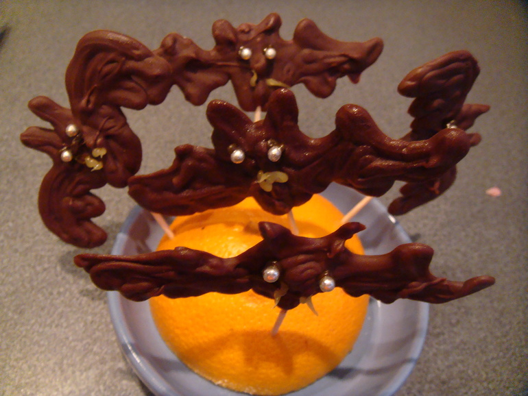 Готовили мы салат "ведьмин костер", делали шоколадных летучих мышей, светильник "голову Джека", пекли пиццу "Дракула" и "пальцы ведьмы".