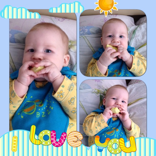 Добрый папа дал яблочко погрызть,а то мама все молоко да молоко #трисыночка #детки #многодетнаясемья #многомама #малыши #люблю месяцев