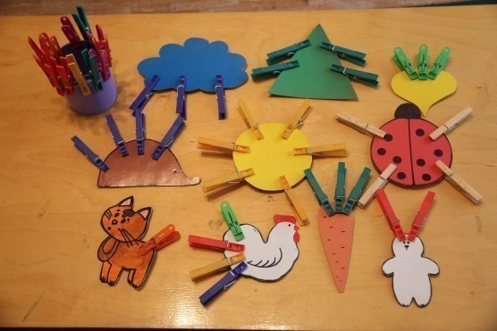 5. Игры с прищепками. Потребуются прищепки и картон.