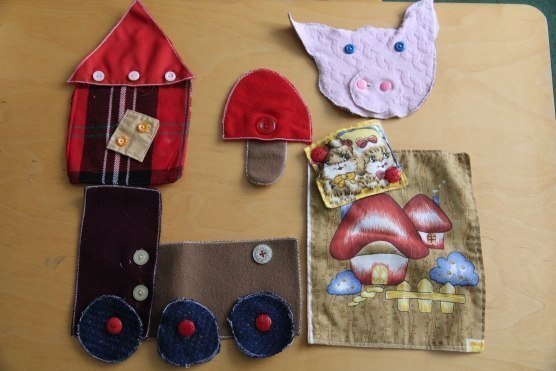 3. Застегивание пуговиц. Потребуется ткань, пуговицы и нитки. (игра "Застежки") .