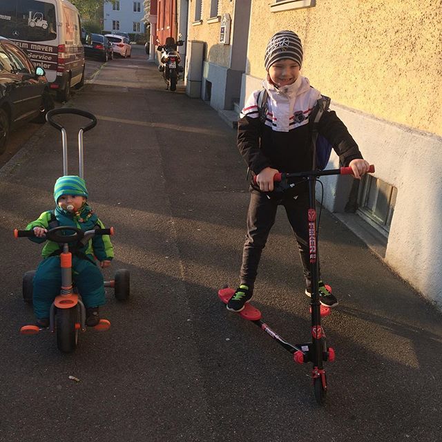 Два брата красавца едут в школу к Яннику #братья #велосипед #самокат #дети