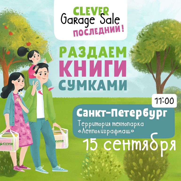 Последний легендарный Clever Garage Sale известного детского издательства Clever состоится 15 сентября на территории технопарка «Ленполиграфмаш»!