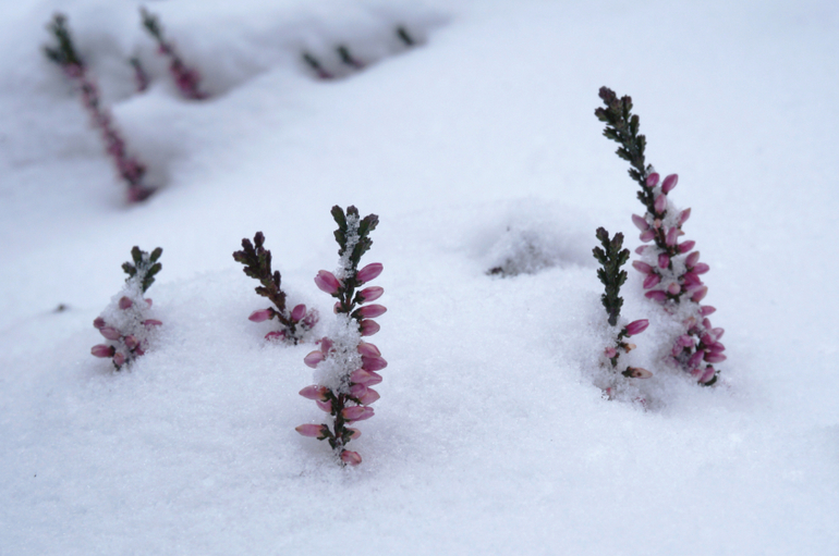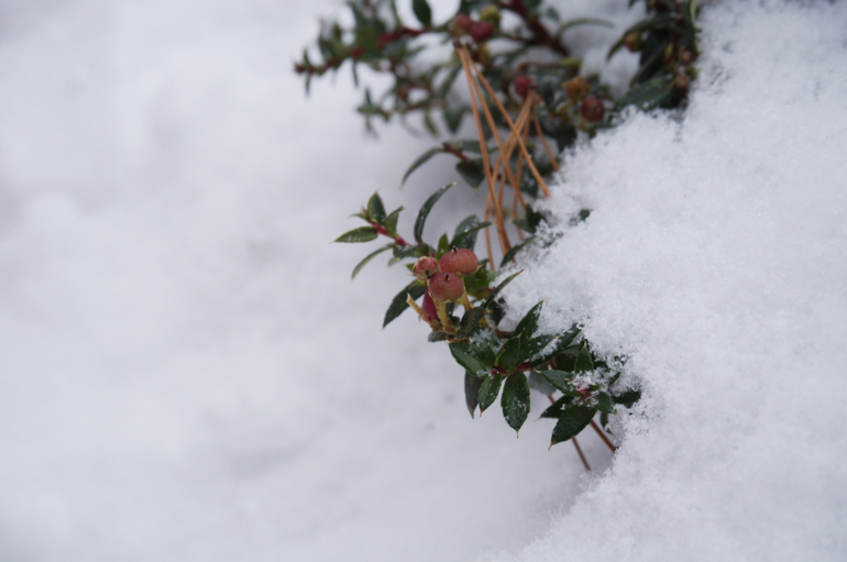 Это слева от входа, вересковая горка с рододендронами вокруг. Сейчас все замело, но мы откопали ;-)