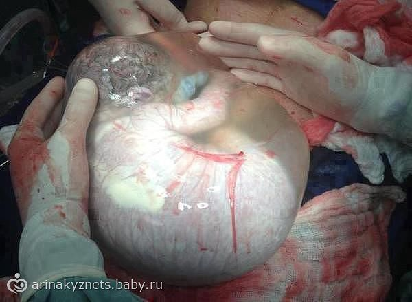 Рождение после кесарева сечения, с нетронутым мешком; Ребенок до сих пор не понял, что он родился...)))) «Это, как он все еще в утробе матери, феномен известен как» завесу рождения». Вот так мы выглядим внутри нашей мамы)