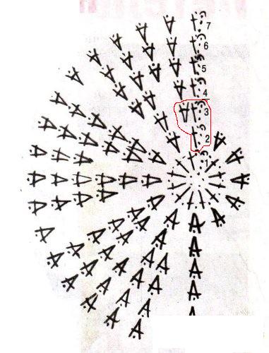 Девочки! Помогите разобрать схемку к шляпке. Я не могу понять в третьем ряду провязывается сразу четыре столбика с накидом?