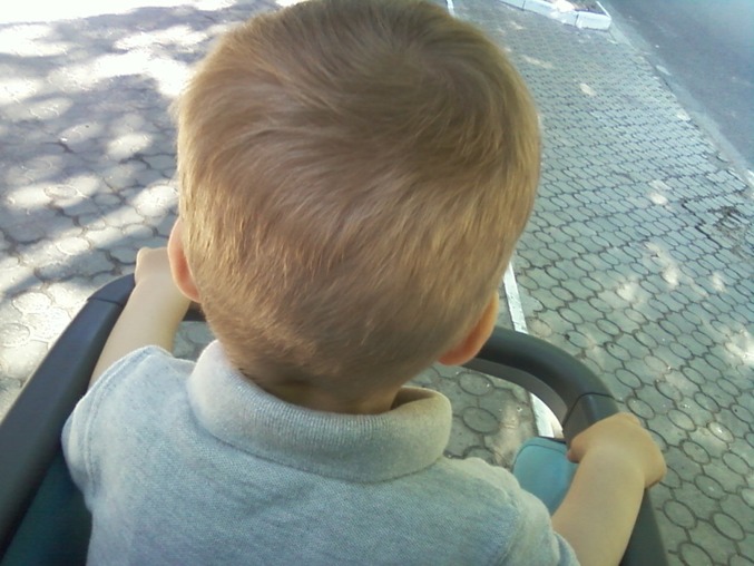 Итаааааааааааак......... мы сегодня подстриглись в парикмахерской!!!!!! Всё по настоящему и по взрослому ))))) обошлось без насилия и проблем! Ему включили Машу на ноуте, посадили в кресло, обвязали, дали печенько и машинку. И вперёд машинкой и ножницами орудовать!!!Так он минут 20 без проблем сидел, а потом, когда стали виски ровнять и красоту наводить, стал вредничать немного, но я его на руки взяла, потом на пол поставила и нормально всё прошло!!! К морю готовы!!!!!