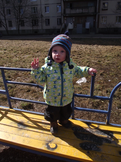 А у нас ветрище холодный. +8. Мы одеты так. Под курточкой еще флисовая кофта и обычное боди, под штанами - колготки. Когда солнца нет, так еще варежки одеваем).