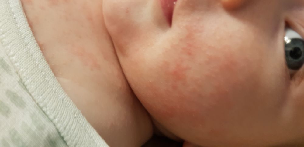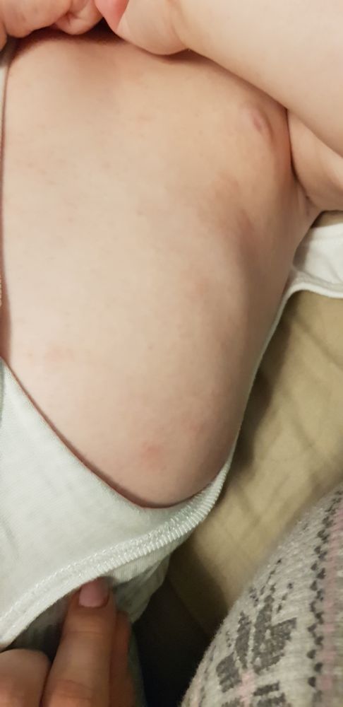Аллергия, потничка или еще что нить? В основном лицо, шея и бока живота. Ножки чистые, есть только покраснения под коленями и сгиба ноги.