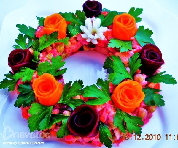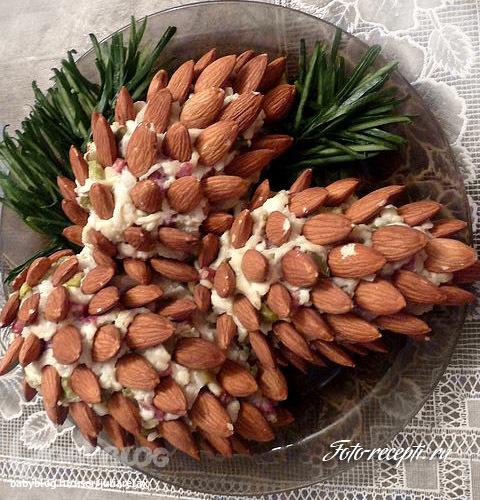 5. Салат оливье сделаю в форме шишек (позаимствовала у Наташи ))) или елочка тож классно смотрится.