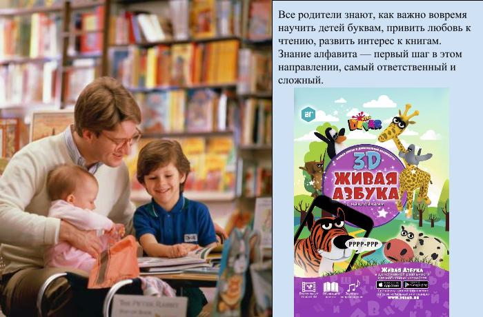 Буквы и зверушки оживают на страницах азбуки с помощью телефона или планшета, работающего на базе Android или IOS. Все очень просто! Вы скачиваете бесплатное приложение, никаких встроенных покупок в нем нет, вводите лицензионный код и играете вместе с ребенком. Аккуратно стирайте защитный слой на коде, он очень нежный))