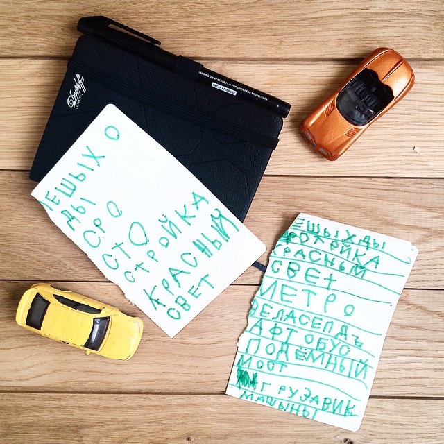 Первые самостоятельные записи. Илья не расстается с блокнотом, едет в машине и фиксирует всё, что видит. #детипишут