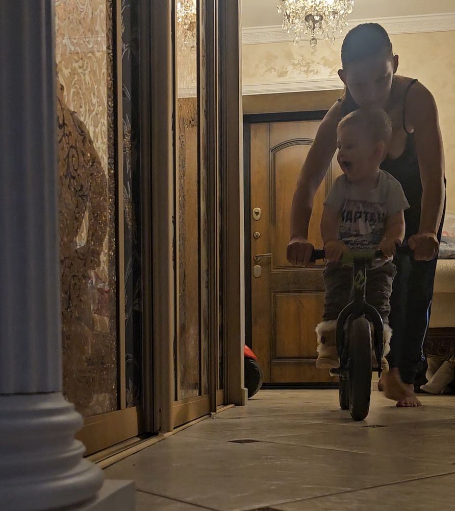 Лидия, потому что это бмх...не на его рост, он не достает до пола.Тренируемся в ботинках. Должен устойчиво стоять на полу, иначе не сможет балансировать, будет на стороны заваливаться, а бмх тяжелый