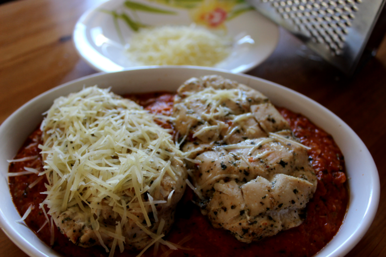 Баклажаны, куриная грудка в томатном соусе под сыром (для конкурса)