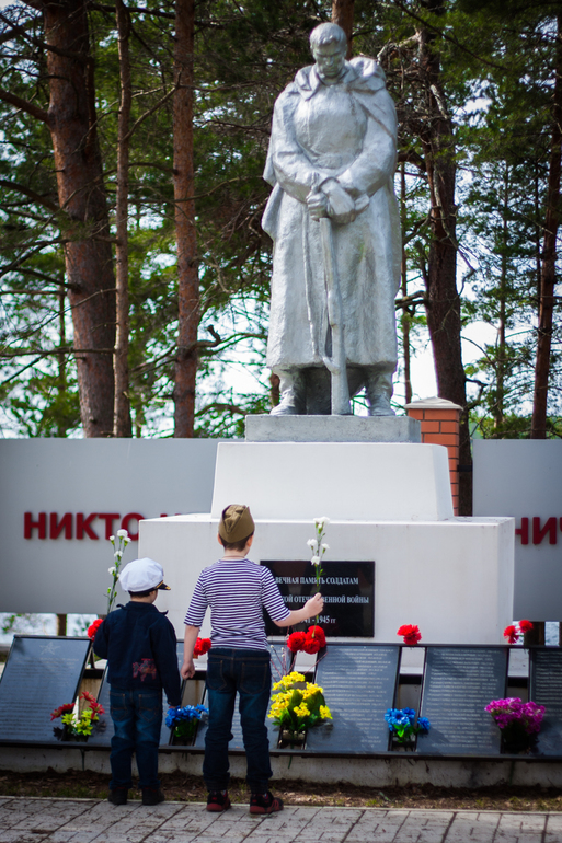 Каждые майские мы уезжаем из города, а значит, дети пропускают все садиковские и школьные мероприятия, посвященные дню победы. Поэтому, возлагать цветы мы ходим с ними лично.