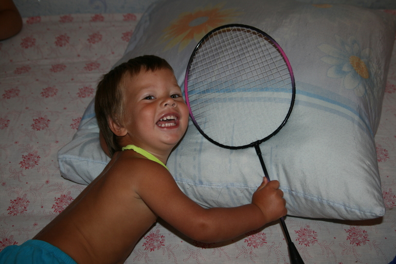 Он у меня, вообще, очень-очень спортивный! Он бы на чемпионате мира для малышей все бы золото взял! силой!