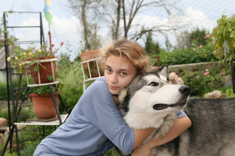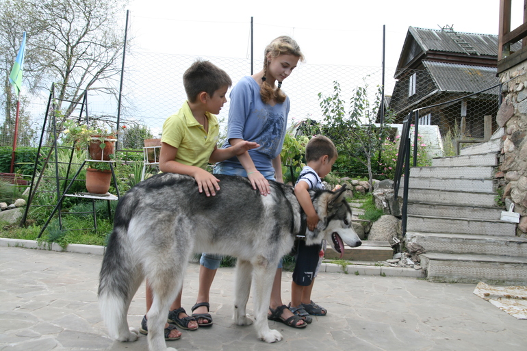 А псинка, на минуточку, 80 кг, 105 см! Но дети его в узел завязали, развязали, потом опять завязали.