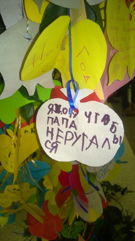 Ходили мы в один театр, а там в фойе стояло дерево желаний. Видимо, был какой-то новогодний флешмоб, в рамках которого дети писали на разноцветных бумажках свои желания и прилепляли на это дерево.