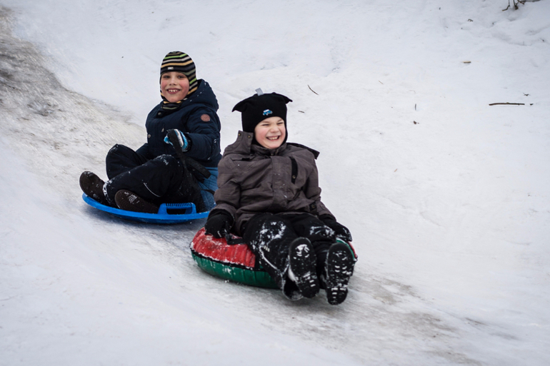 И без ватрушек? Мягкопопым детям сейчас даже на ледянке "больно" кататься. А нам на картонке, вообще, отлично было!